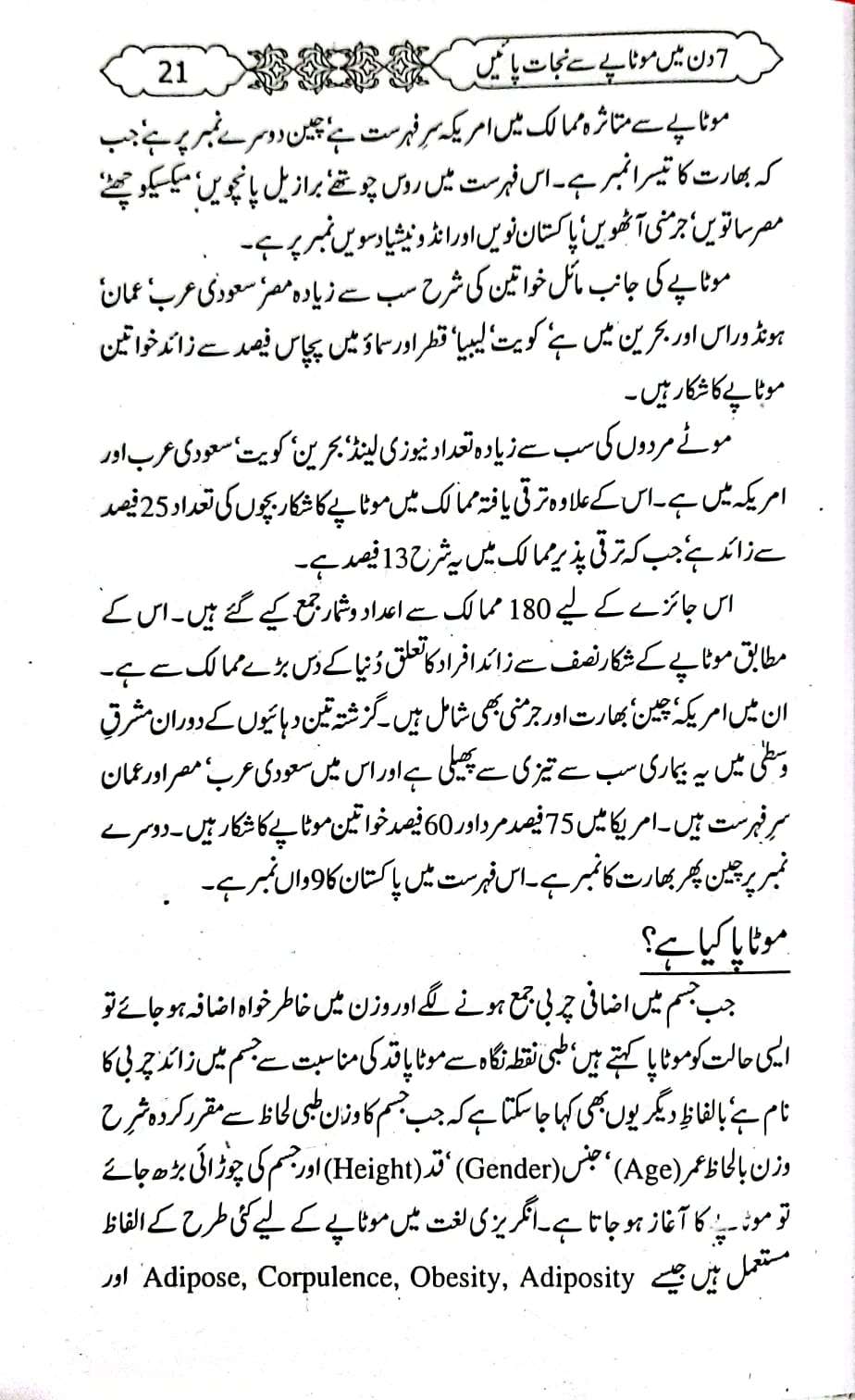 7 din me motapy sy nijat paey (سات دن میں موٹاپے سے نجات)
