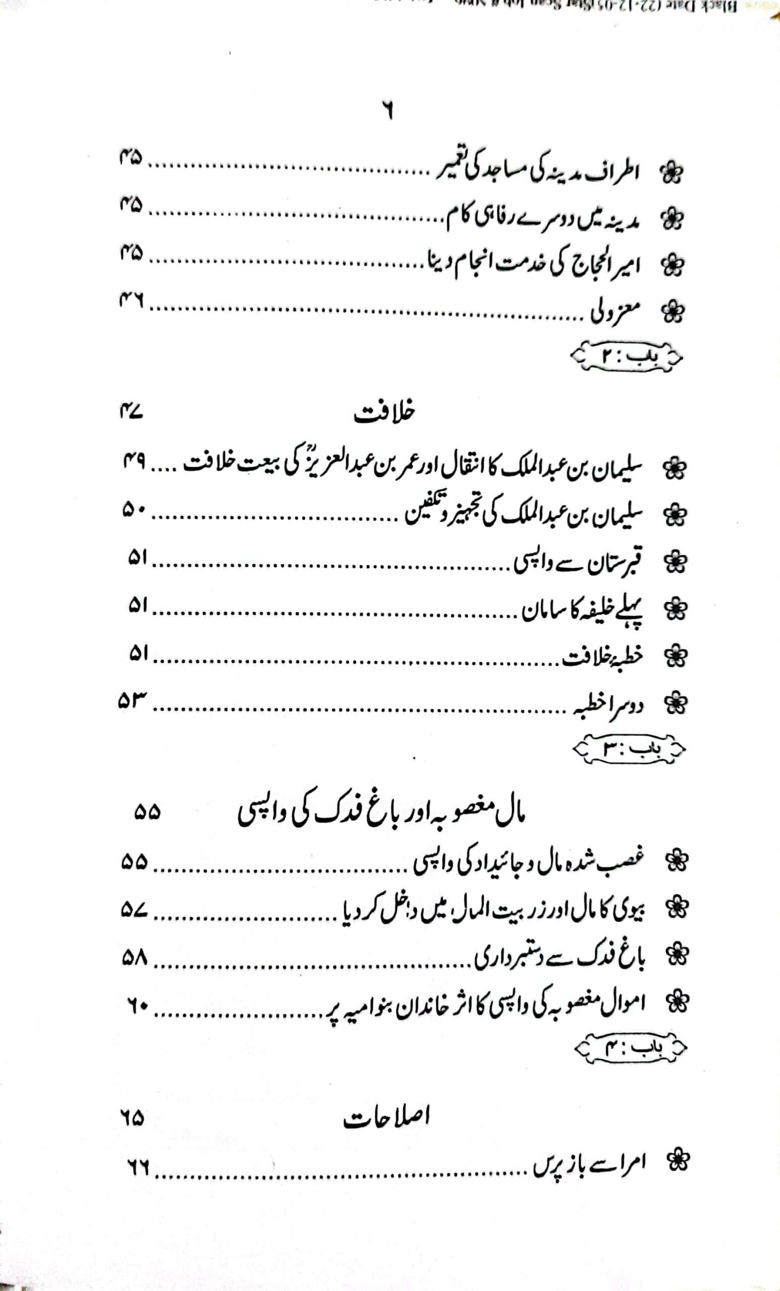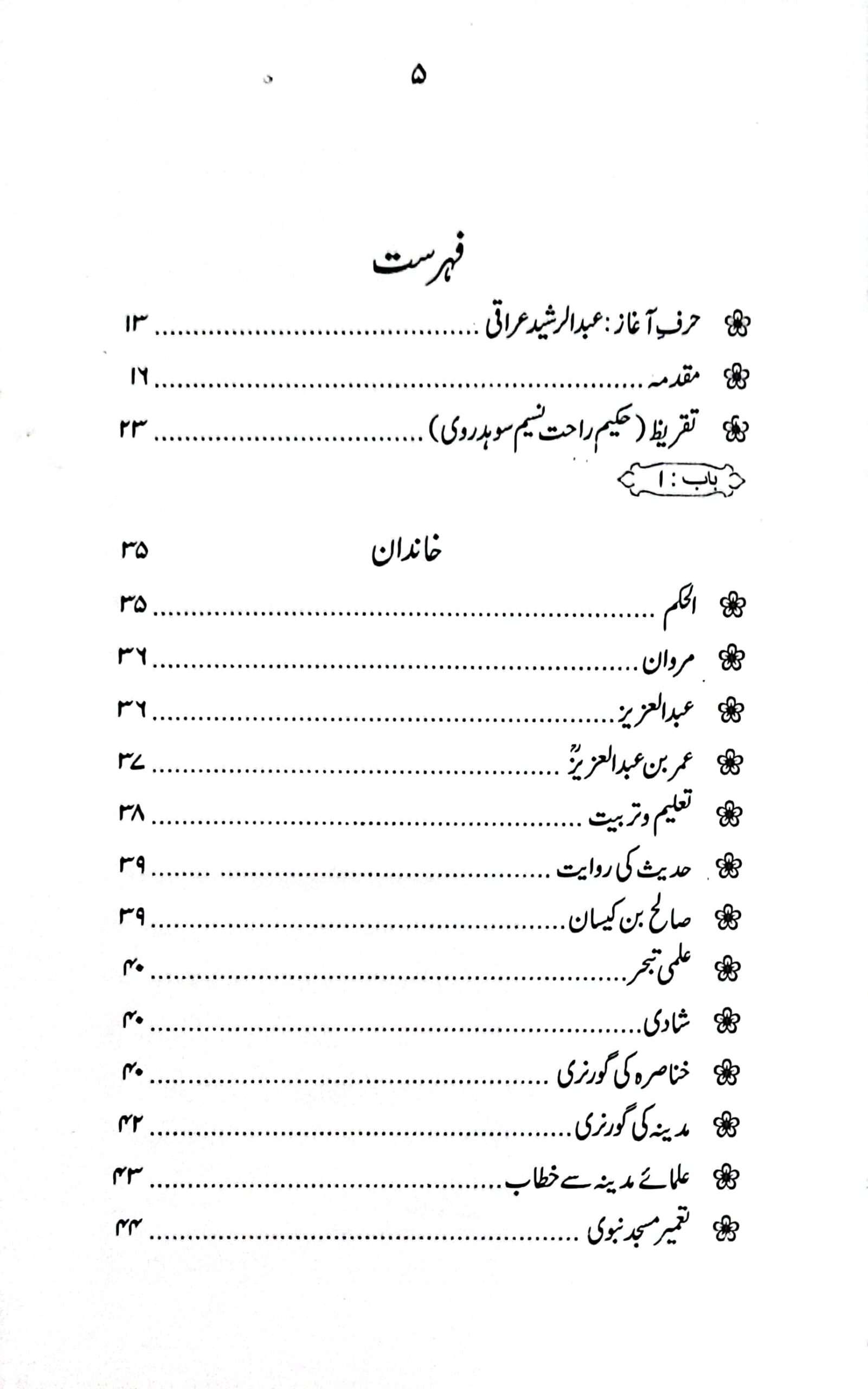 امیر المومنین سیدنا عمر بن عبد العزیز کوپانچواں خلیفہ راشد تسلیم کیا گیا ہے ۔ حضرت عمربن عبد العزیز عمرثانی کی حیثیت سےابھرکر سامنے آئے ۔جیسے سیدنا عمرفاروق اعظم نےاپنے 10 سالہ عہد خلافت میں ہزاروں مربع میل پر فتح حاصل کی۔حضرت عمر بن عبد العزیز نےگو اڑھائی سال خلافت کوسنبھالا مگر انہوں نے بھی متعدد علاقوں کو فتح کر کے اسلامی حدود میں شامل کیا۔ انہوں نے جہاد کے علاوہ دعوت الی اللہ پر بھی خاصہ زور دیا اور کفر کےدلوں کو اسلام کی برکات سےآراستہ کر کے ان کو دین اسلام میں داخل کیا ۔حضرت عمر بن عبدالعزیز عہد ولید بن عبد الملک میں مدینہ کے گورنر رہے تھے جب آپ بحیثیت گورنر مدینہ منورہ میں داخل ہوئے تو 30 خچروں پر آپ کا ذاتی سامان لدا ہوا تھا لیکن جب مسند خلافت پر متمکن ہوئے توسارا سامان فروخت کر کے اس کی رقم بیت المال میں جمع کرادی خلافت کابار سر پر آتے ہی ان کی زندگی بدل گئی۔حدیث وسیراور تاریخ ورجال کی کتب میں ان کے عدل انصاف ،خشیت وللہیت،زہد وتقوٰی ،فہم وفراست اور قضا وسیاست کے بے شمار واقعات محفوظ ہیں اور آپ کی سیرت پر عربی اردو زبان میں متعدد کتب موجود ہیں ۔ زیر نظر کتاب ’’عمر بن عبد العزیز منہج خلافت راشدہ کا یک روشن باب ‘‘ وطن عزیز کے معروف سوانح نگار مولانا عبد الرشید عراقی (مصنف کتب کثیرہ) کی کاوش ہے ۔ عراقی صاحب نے اس کتاب میں عمر بن عبد العزیز کی سوانح حیات اور ان کے علمی ودینی ، قومی، ملی اور سیاسی کارناموں کی تفصیل اس کتاب میں بیان کردی ہے