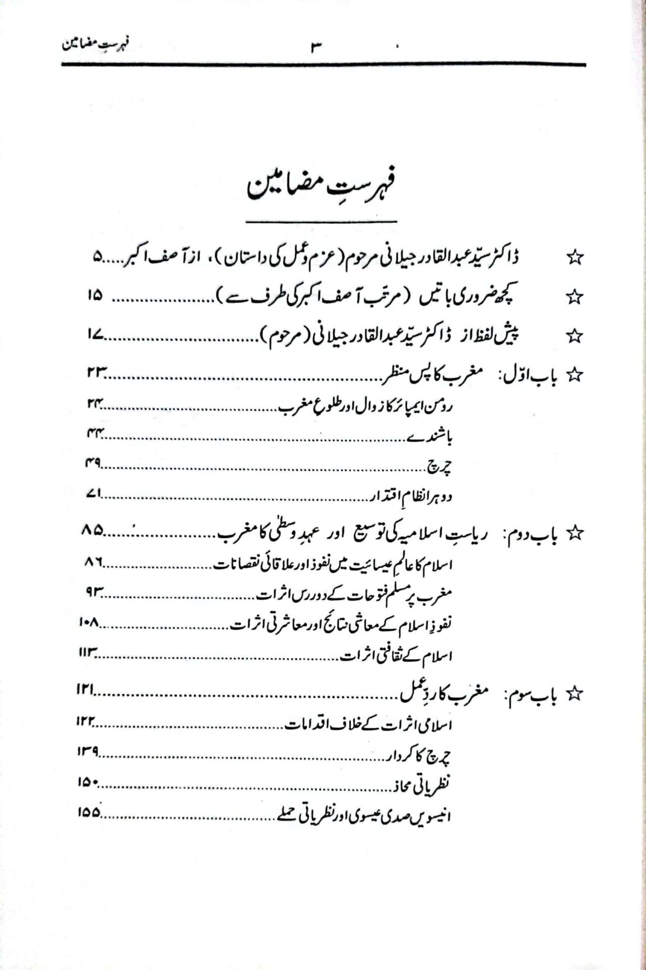 تہذیبیں گروہ انسانی کی شدید محنت اور جاں فشانی کا ثمرہ ہوتی ہیں۔ہر گروہ کو اپنی تہذیب سے فطری وابستگی ہوتی ہے۔جب تک اس کی تہذیب اسے تسکین دیتی ہے ،وہ دیگر تہذیبوں سے بے نیاز رہتا ہے۔جب کوئی بیرونی تہذیب اس پر دباؤ ڈالنے لگتی ہے تو معاشرہ اپنی تہذیب کی مدافعت کے لئے اٹھ کھڑا ہوتا ہے،اور مخالف تہذیب کو اپنی تہذیب پر اثر انداز ہونے سے روکنے کی کوشش کرتا ہے۔یہ مدافعت اکثر حربی ٹکراؤ کی صورت اختیار کر جاتی ہے،اور اگر حربی مدافعت کی قوت باقی نہیں رہ جاتی تو غالب معاشرے کے خلاف سرد جنگ شروع ہوجاتی ہے۔تاآنکہ دونوں میں سے کسی ایک کو قطعی برتری حاصل نہ ہوجائے۔بصورت دیگر کوئی نئی تہذیب وجود میں آتی ہے جس میں متحارب معاشرے ضم ہوجاتے ہیں۔مستشرقین بھی اسلام اور پیغمبر اسلام کو اسی نگاہ سے دیکھتے ہیں ، اور اس کا مقابلہ کرنے کی کوششوں میں لگے رہتے ہیں۔ زیر تبصرہ کتاب “اسلام ،پیغمبر اسلام اور مستشرقین مغرب کا انداز فکر”محترم ڈاکٹر عبد القادر جیلانی کا کراچی یونیورسٹی سے پی ایچ ڈی کی ڈگری کے لئے لکھا گیا مقالہ ہے،جسے محترم آصف اکبر صاحب نے مرتب کیا ہے۔مقالہ نگار نے اس میں مغرب کا پس منظر،ریاست اسلامیہ کی توسیع اور عہد وسطی کا مغرب، مغرب کا رد عمل ،مستشرقین، اورسترہویں تا انیسویں صدی عیسوی کا مشترکہ جائزہ جیسے موضوعات پر تفصیلی بحث کی ہے۔مغرب کے انداز فکر کو سمجھنے کے لئے یہ ایک مفید اور بہترین کتاب ہے۔(راسخ)