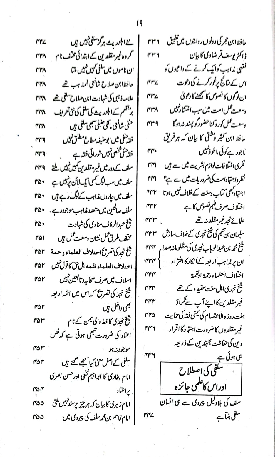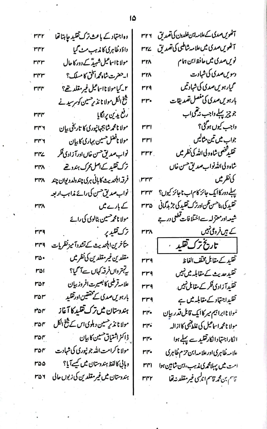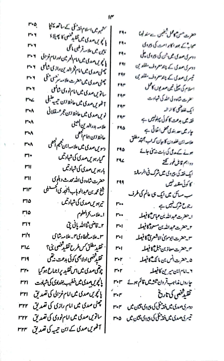 اس کتاب کی جلد اول میں ضرورت فقہ،مقام فقہ،الموافقہ بین الحدیث و الفقہ،حقیقت فقہ،اساس فقہ،درجہ فقہ،دائرہ فقہ،تدوین فقہ، موضوع فقہ،اتباع فقہ،تاریخ فقہ،خقیقت تلفیق،تاریخ تقلید،تاریخ ترک تقلید،سلفی کی اصطلاح جیسے اہم عنوانات پر فاضلانہ گفتگو کی گئی ہے