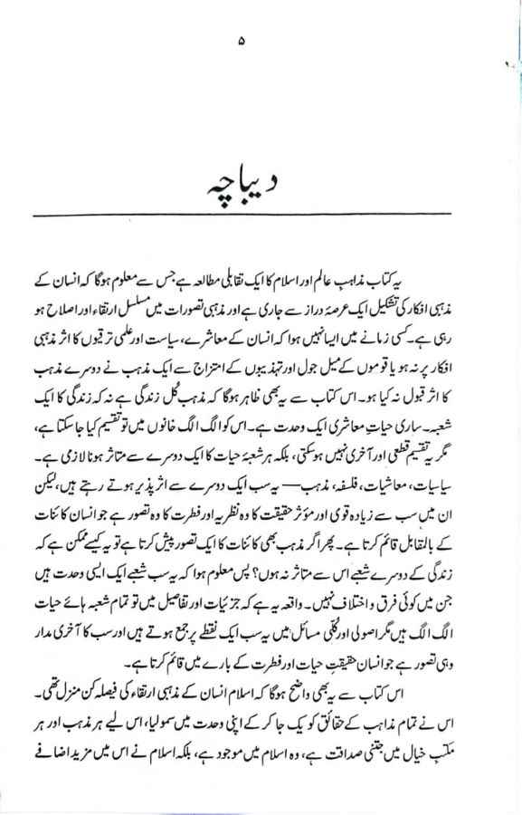 جب ہم مذاہب کی تاریخ کا مطالعہ کرتے ہیں۔ تو ہم پر یہ حقیقت منکشف ہوتی ہے۔ کہ جب سے یہ کائنات وجود میں آئی ہے۔ تب سے انسان اور مذہب ساتھ ساتھ چلتے آئے ہیں۔ ابتدا میں تمام انسانوں کا مذہب ایک تھامگر جوں جوں انسانوں کی تعداد میں اضافہ ہوتا گیا لوگ مذہب سے دور ہونے لگے پھر خالق کائنات نے مختلف ادوار میں انسانوں کی راہنمائی کے لیے پیغمبر بھیجے لیکن پیغمبروں کے اس دنیا سے رخصت ہو جانے کے بعد ان کے ماننے والوں نے ان کے پیغام پر عمل کرنے کی بجائے خود سے نئے دین اور مذاہب اختیار کر لیے اس طرح مذاہب کی تعداد میں اضافہ ہوتا گیا او ر اس وقت دنیا میں کئی مذاہب پیدا ہو چکے ہیں جن میں سے مشہور مذاہب، اسلام، عیسائیت، یہودیت، ہندو ازم، زرتشت، بدھ ازم، سکھ ازم شامل ہیں۔ اس بات سے انکار ممکن نہیں کہ بنی نوع انسان ہر دور میں کسی نہ کسی مذہب کی پیروی کرتے رہے ہیں۔ لیکن ان تمام مذاہب کی تعلیمات میں کسی نہ کسی حد تک مماثلت پائی جاتی ہے۔ جیسا کہ دنیا کے تمام مذاہب کسی نہ کسی درجے میں قتل، چوری ،زنااور لڑائی جھگڑے کو سختی سے ممنوع قرار دیتے ہیں اور تمام قسم کی اچھائیوں کو اپنانے کی تلقین کرتے ہیں۔ زیر تبصرہ کتاب ’’اسلام اور مذاہب عالم‘‘ جناب محمد مظہر الدین صدیقی کی تصنیف ہے۔ اس کتاب میں انہوں نے اس بات کو واضح کیا ہے کہ اسلام انسان کے مذہبی ارتقاء کی فیصلہ کن منزل تھی۔ اس نے تمام مذاہب کے حقائق کو یک جا کر کے اپنی وحدت میں سمو لیا ہے۔ اس لیے ہر مذہب اور ہر مکتبِ خیال میں جتنی صداقت ہے وہ اسلام میں موجود ہے بلکہ اسلام نے اس میں مزید اضافے کیے۔ اس لحاظ سے یہ انسان کا سب سے ترقی یافتہ مذہب ہے