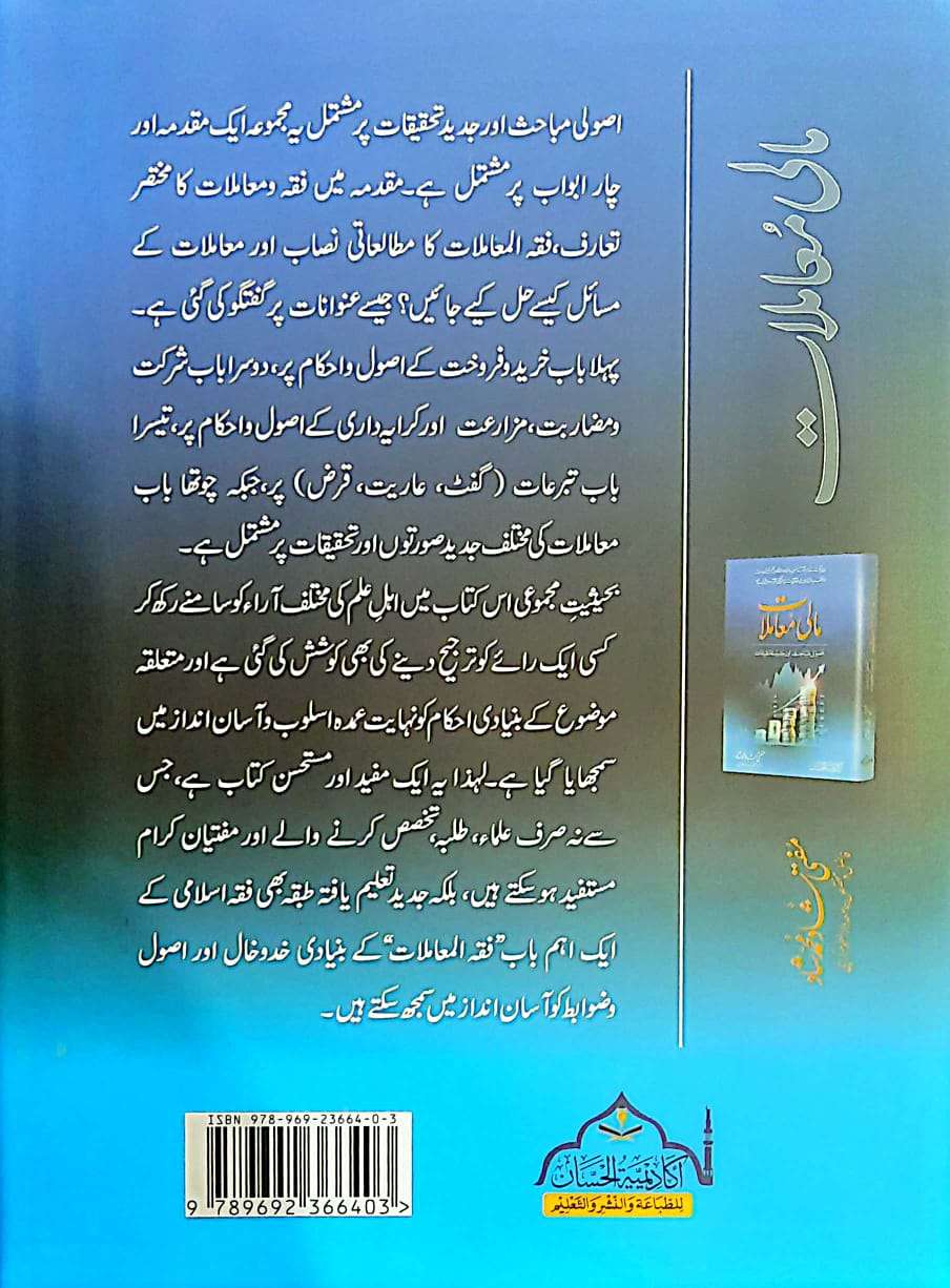 مالیاتی فقہ کے اہم ابواب کے اصول و ضوابط اور مباحث کی تلخیص ، قدیم و جدید مسائل اور مختلف رسائل و جرائد میں مالی معاملات پر شائع شدہ تحقیقی مقالات و مضامیں کا دلچسپ مجموعہ