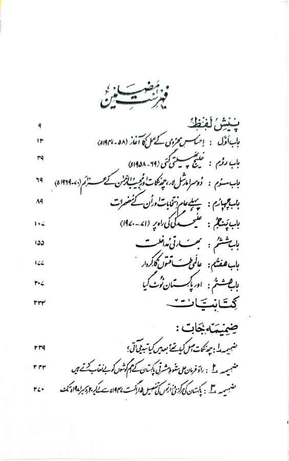 کتاب کے مضامین 1-احساس محرومی کے عمل کا آغاز 2-خلیج پھیلتی گئی 3-دوسرا مارشل لاء ، چھ نکات اور مجیب الرحمان کے عزائم 4-پہلے عام انتخابات اور اُن کے مضمرات 5-علیحدگی کی راہ پر 6-بھارتی مداخلت 7-عالمی طاقتوں کا کردار 8-اور پاکستان ٹوٹ گیا 9-چھ نکات اصل کیا تھے اور بعد میں کیا تبدیلی کیا آئی 10-پاکستان کی مرکزی وازارتوں کی تفصیل