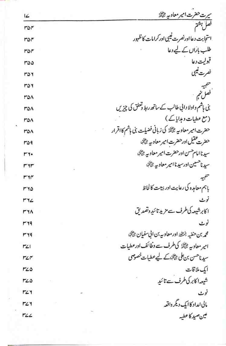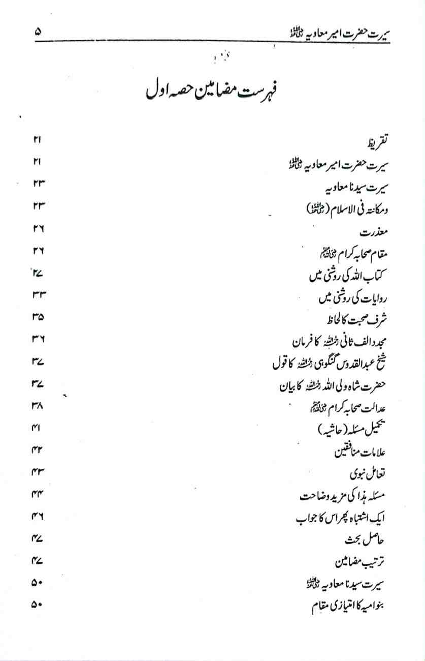 حضرت مولانا محمد نافع صاحب کو اللہ تعالیٰ نے اس بات کی خصوصی توفیق عطا فرمائی ہے کہ انھوں نے اپنی متعدد تالیفات کے ذریعے سے حضرات صحابہ کرام کے حقیقی سیرت و کردار کو مستحکم علمی اور تاریخی دلائل کے ساتھ واضح فرمایا ہے۔ جن انصاف نا آشنا حلقوں نے ان حضرات پر طرح طرح کے اعتراضات وارد کیے ہیں ان کا شافی اور اطمینان بخش جواب دیا ہے اور حضرات صحابہ کرام کے درمیان جو علمی اور سیاسی اختلافات پیش آئے، ان کے حقیقی اسباب کی دلنشیں وضاحت فرمائی۔ حضرت معاویہ ان صحابہ کرام میں سے ہیں جن کے خلاف اعتراضات و مطاعن کے ترکش سے کوئی تیر بچا کر نہیں رکھا گیا۔ زیر تبصرہ کتاب ’سیرت امیر معاویہ رضی اللہ عنہ‘ میں حضرت مولانا محمد نافع صاحب نے ان کی سیرت کے حقیقی روشن پہلوؤں کو مضبوط دلائل کے ساتھ اجاگر کیا ہے۔ پہلی جلد کے پہلے حصے میں حضرت معاویہ کے سوانح، عہد رسالت میں ان کے منصب و مقام اور کارنامے اور ان کے مناقب کی احادیث کو پوری تحقیق کے ساتھ بیان کیا ہے۔ دوسرے حصے میں حضرات خلفائے ثلاثہ کے عہد مبارک میں حضرت معاویہ کی خدمات اور دیگر کارناموں پر روشنی ڈالی گئی ہے۔ تیسرے حصے میں حضرت عثمان کی شہادت کے بعد کے واقعات زیر بحث لائے گئےہیں۔ چوتھے اور آخری حصے میں فاضل مؤلف نے حضرت معاویہ کے عہد خلافت کے کارناموں، فتوحات، ان کے قائم کیے ہوئے انتظامی ڈھانچے، ان کی رفاہی اور ترقیاتی خدمات، ان کی علمی کاوشوں، ان کے مکارم اخلاق اور اہل بیت کے ساتھ خوشگوار تعلقات کا ذکر ہے۔ آخر میں حضور اقدسﷺ کے ساتھ ان کے عشق و محبت کے مظاہر اور ان کے بارے میں اکابر امت کی آرا نہایت تفصیل اور استقصا کے ساتھ پیش کی ہیں۔