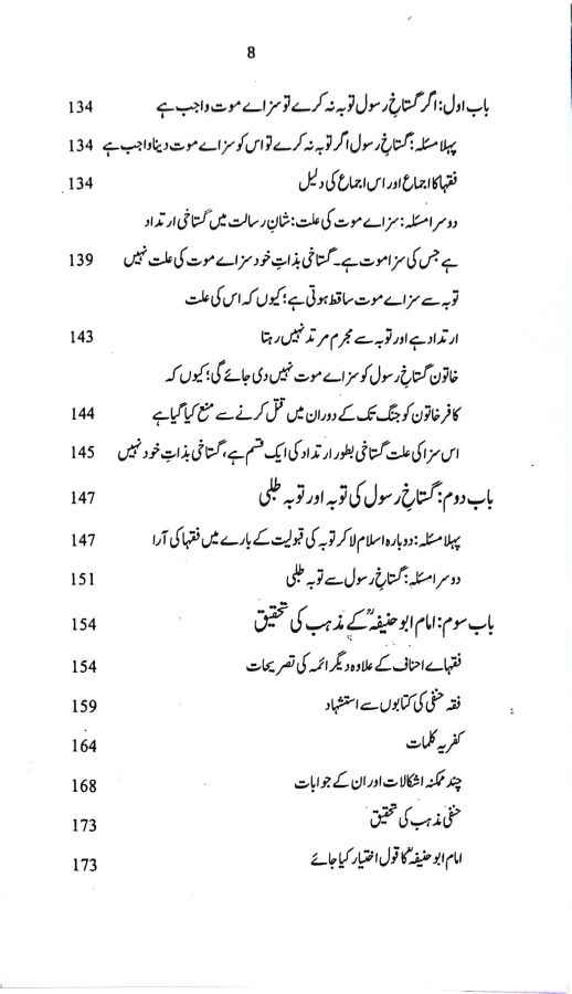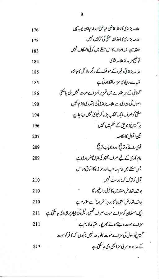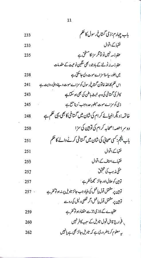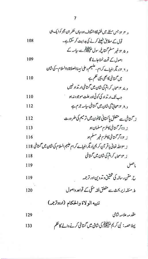 یہ کتاب علامہ ابن عابدین شامیؒ کی معروف تصنیف “تنبیہ الولاۃ و الحکام” کا اردو ترجمہ ہے جس میں علامہ شامیؒ نے شاتم رسول کی سزا کے حوالے سے بعض حنفی علماء کی عبارت سے پیدا ہونے والی غلط فہمیوں کا ازالہ کرتے ہوئے حسب ذیل پانچ عنوانات کے تحت امام ابو حنیفہؒ کے فقہی مذہب کی مفصل تحقیق کی ہے