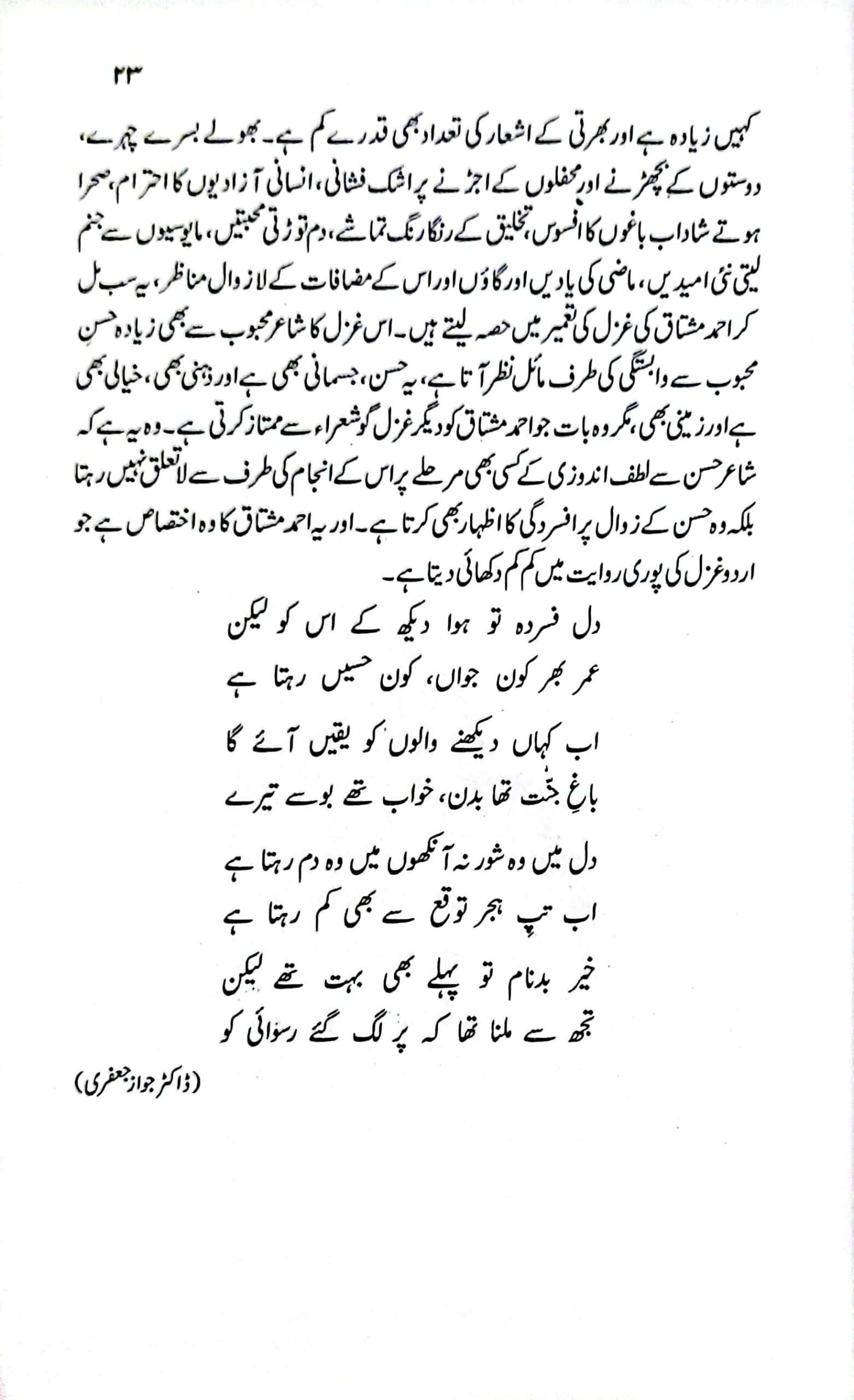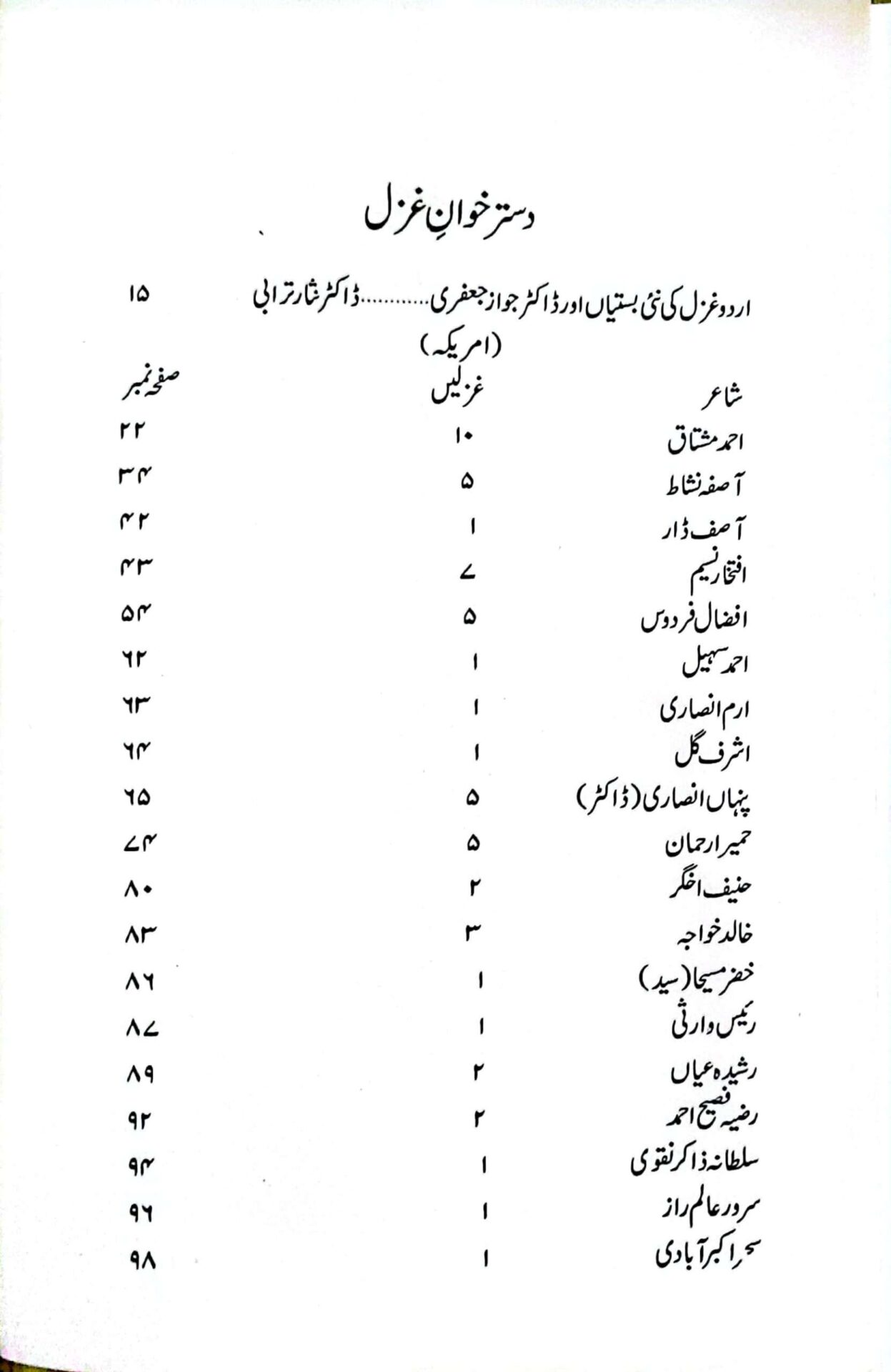 ۔ اس کتاب میں انڈو پاک سے ہجرت کر کے امریکہ، یورپ اور آسٹریلیا میں جا بسنے والے غزل گو شاعروں کی غزل کو موضوع بنایا گیا ہے۔ نامور شعرا کی شاعری پر تنقیدی تبصروں کے ساتھ ان شاعروں کی غزل کا انتخاب بھی موجود ہے۔ یاد رہے کہ اس سے قبل ڈاکٹر جواز جعفری ”اردو ادب یورپ اور امریکہ میں“ اور ”اردو افسانے کا مغربی دریچہ“ سمیت ڈیڑھ درجن کے قریب کتابیں لکھ چکے ہیں۔