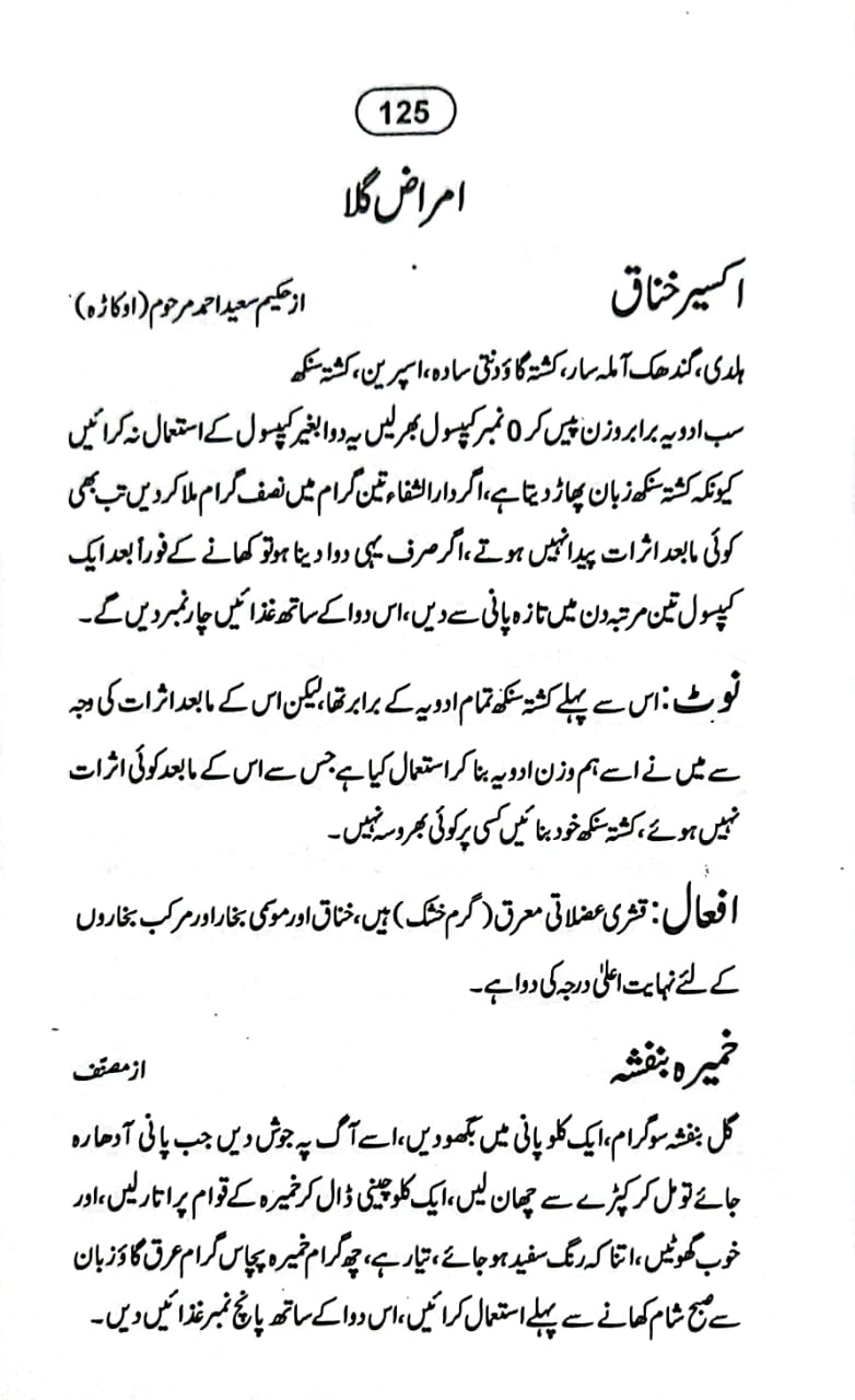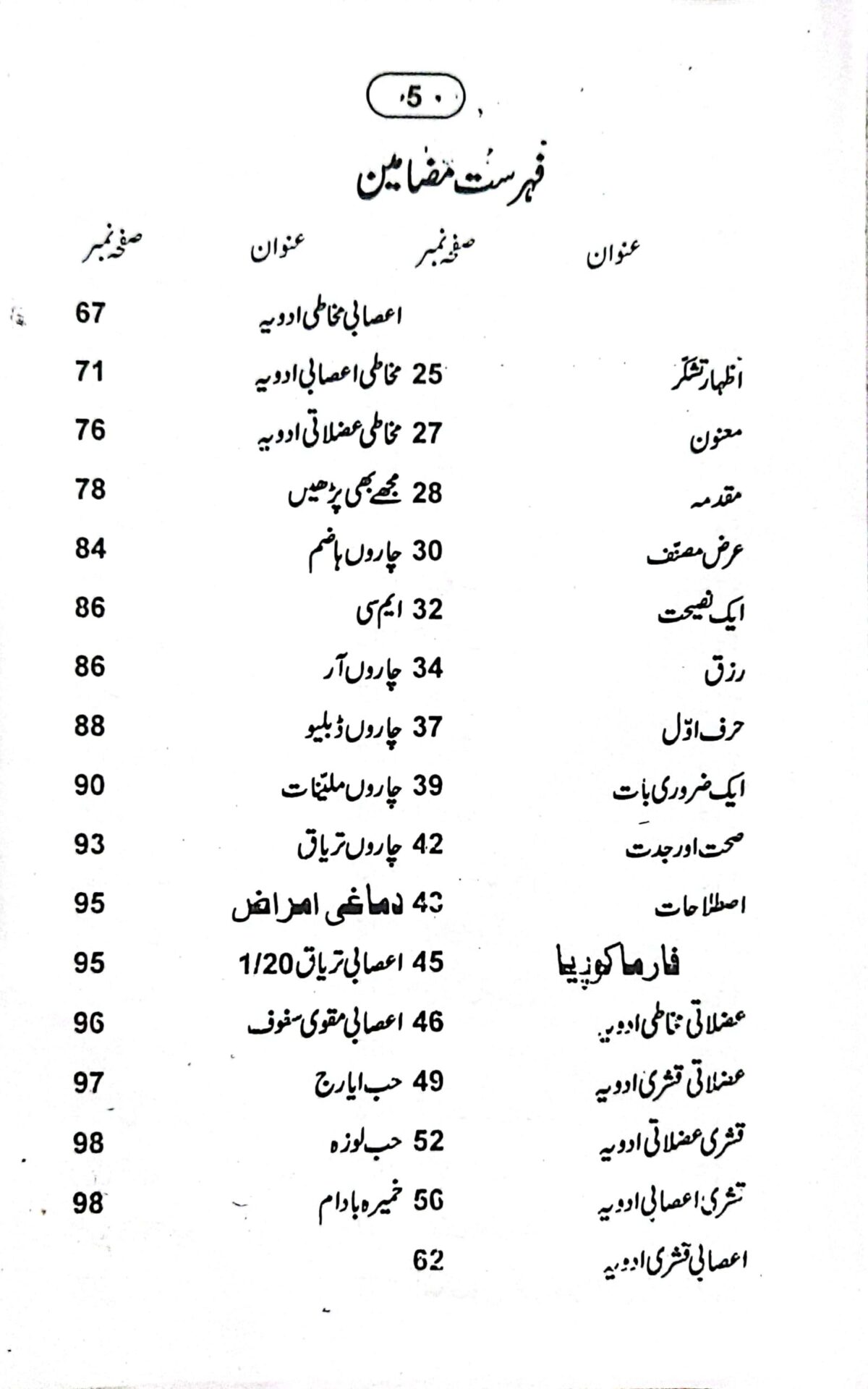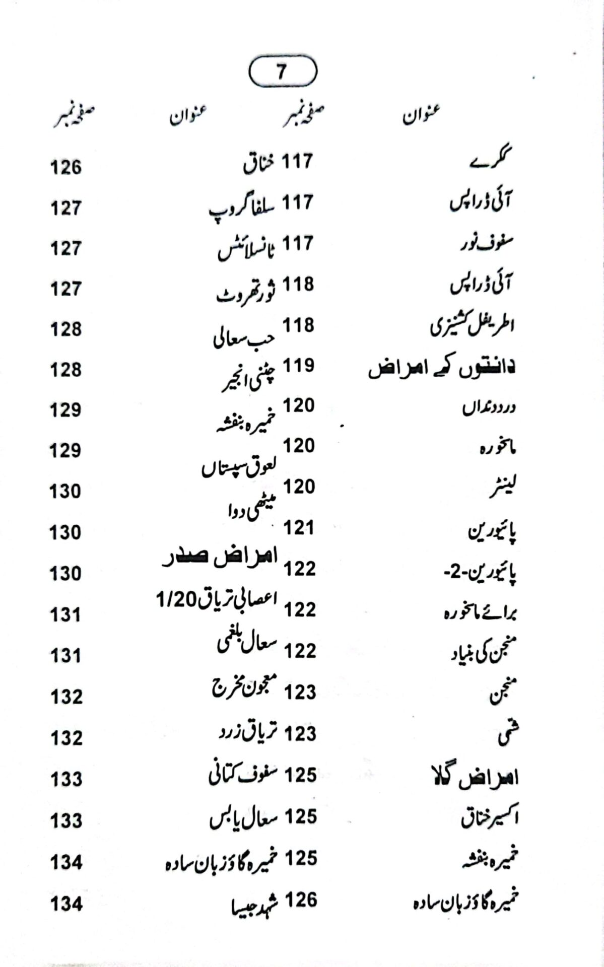 اس کتاب کی خاص بات یہ کہ پڑھنے والوں کو مزید پریشانی سے بچانے کیلٸے اس بات کو مدِنظر رکھ کر امراض کے علیحدہ علیحدہ باب باندھ دۓ گٸے ہیں تاکہ جس کسی کو جس مرض کا نسخہ تلاش کرنا ہو آسانی سے اس باب میں سے ڈھونڈ لے ، یہ کام مشکل تو بہت تھا کہ ایک ایک نسخہ الگ الگ ابواب میں لکھا جاۓ لیکن مالک کی توفیق سے نتیجہ کتاب کی شکل میں موجود ہے ۔ اس میں دٸیے گٸے نسخوں سے آپ بلاخوف و خطر کام لیں تمام نسخہ جات آزمودہ ہیں