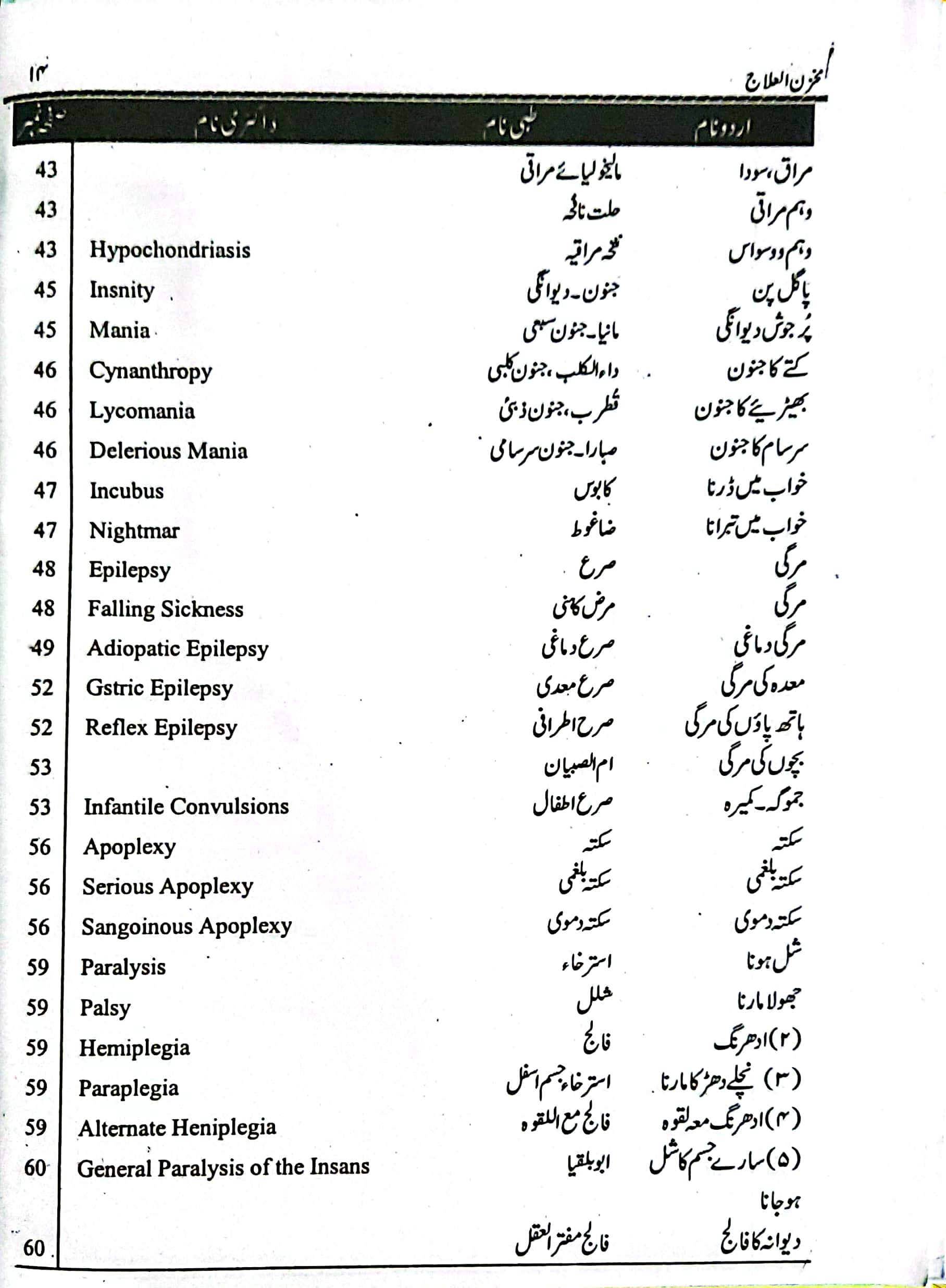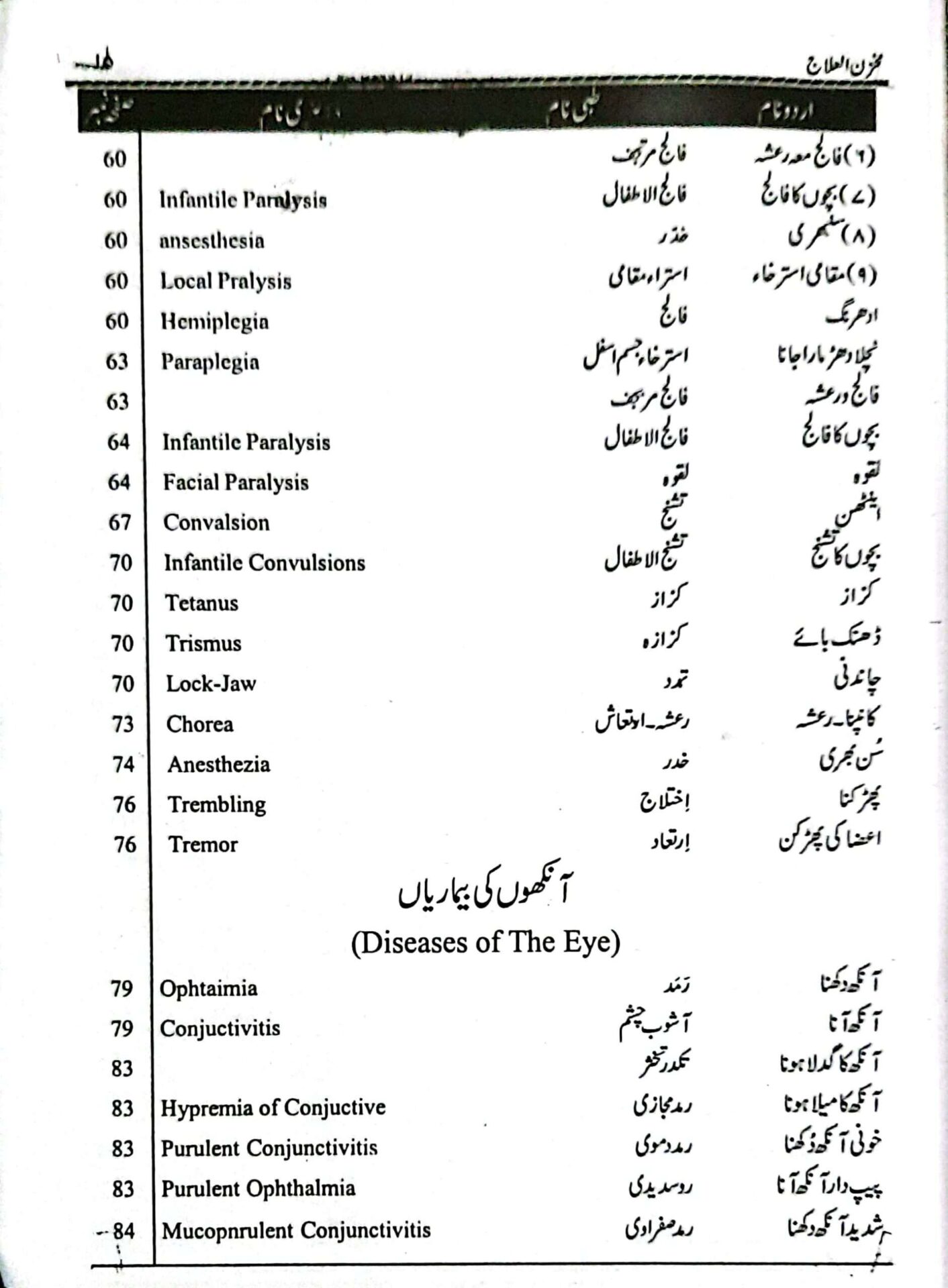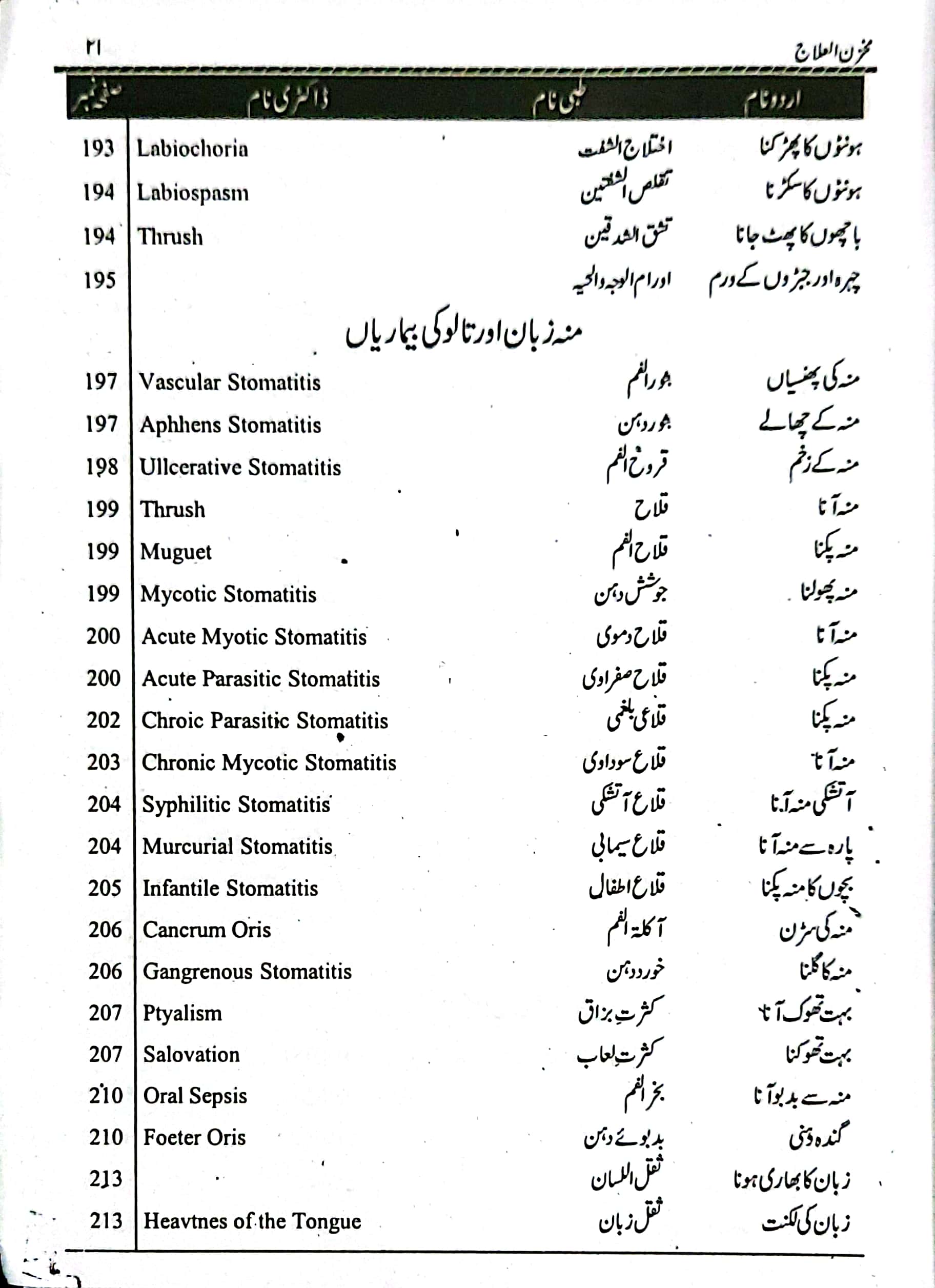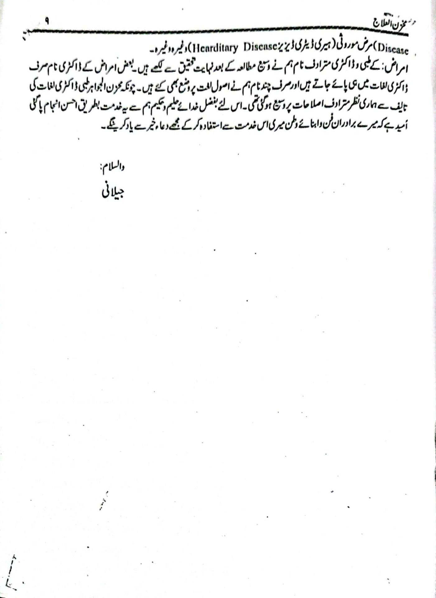 یہ کتاب طب یونانی کی اپنی طرز کی ایک نئی کتاب ہے – اس میں تمام امراض کے مشہور اور اردو نام اور طبی و ڈاکٹری مترادف نام نہایت تحقیق و صحت سے لکھا ہہں اور مرض کے اسباب و علامات اور تشخیص وغیرہ کو خوب وضاحت سے لکھا ہے اور پھر ہر مرض کا علاج پہلے مفردات یعنی مفرد ادویہ سے پھر مرکبات یعنی بنی بنائی یونانی مرکب ادویہ سے پھر مشاہیر اطباء خذاق کے مجربات سے کرنا بتایا ہے – اس کی موجودگی میں علاج معالجہ کےلیے پھر کسی اور طبی کتاب کے دیکھنے کی ضرورت باقی نہیں رہتی-